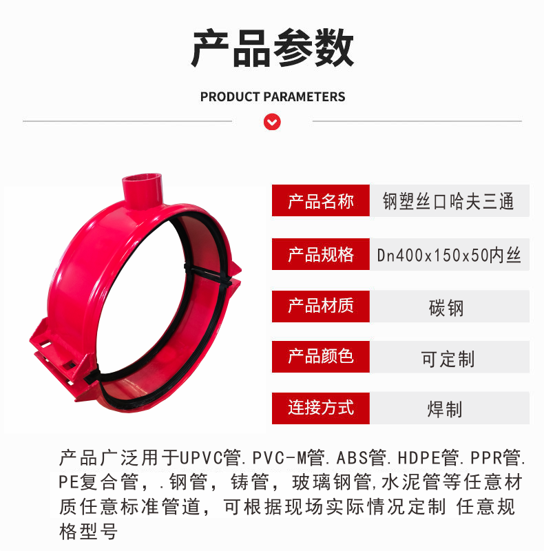 各种哈夫节|堵漏器|抢修节|增接口|三通管卡|哈夫三通|钢塑管件|UPVC管件|HDPE管件|常州市宝硕管件有限公司